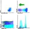 Figure 1 Normal double-negative Gamma/Delta cells in purple; normal TCD4+ cells in green; normal TCD8+ cells in dark blue; TD CD8+ cells in turquoise.