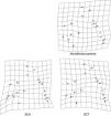 The thin-plate spline shows the differences in shape among the groups. The variation in shape in the SCA group refers especially to the variation in the external auditory meatus and at the base of the occipital bone, in addition to the mandibular setback and large upper central incisor inclination, showing a tendency towards prognathism in this group. The characteristics of the SCT group resembled those of the SCA group, but the variations were more subtle, especially the maxillary prognathism, with slighter upper central incisor inclination and mandibular setback. The control group showed different variations from those observed in the other groups, without any tendency towards mandibular setback or maxillary prognathism (Figure 3). The thin-plate spline uses an interpolation algorithm that serves as the mathematical basis for the visualization of shape differences, using images or warped surfaces.17