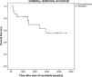 The median follow-up duration after initiation of ruxolitinib was 14 months (range: 2–46 months) for all 23 patients and extended to 26 months (range: 2–46 months) for the 18 patients who were responsive to ruxolitinib. In the entire cohort of 23 patients, the OS was 73.9% (95% CI: 54.5–93.3%) at 1 year, 43.4% (95% CI: 21.6–65.4%) at 2 years, and 26.1% (95% CI: 6.6–45.5%) at 3 years (Figure 1). For the 18 patients who were responsive to ruxolitinib, the OS was 83.3% (95% CI: 64.2–102.4%) at one year, 56.1% (95% CI: 30.1–80.9%) at two years, and 33.3% (95% CI: 9.2–57.4%) at three years (Figure 2).