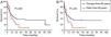 The poor cytogenetic prognosis category included complex karyotypes (two or more unrelated abnormalities), monosomy of chromosome 5, monosomy of chromosome 7, translocations involving the 11q23 locus, and all deletions. The intermediate prognosis category was defined as normal karyotype and trisomies of chromosomes 4, 8 and 21. The translocations t(15;17), t(8;21) and inversions (16)/t(16;16) were considered the only entities capable of predicting a favorable prognosis. Other factors considered as poor prognosis in the current study were age greater than 60, a WBC count at diagnosis over 30×109/L, secondary leukemia and the lack of complete remission at first induction. Complete remission was considered to be the absence of signs and symptoms of disease associated with normal complete blood count and less than 5% blasts in bone marrow aspirate.