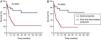 There was no statistically significant difference when comparing the survival curves (Figure 2A) related to age for patients above and below the cut-off determined for the study population (median survival of 12.4 months for the group aged less than or equal to 60 years versus 8.2 months for the group older than 60 years; p-value=0.2227; OR=0.6676; 95% CI=0.3488–1.278). The median EFS (Figure 2B) was 10.7 months for the younger group versus 7.3 months for the over 60-year olds (p-value=0.2448; OR=0.6812; 95% CI=0.3567–1.301). The survival curve was not statistically significant for the gender-related SG with a median survival of 15.3 months for females versus 26.8 months for the men (p-value=0.2756; OR=0.7625; 95% CI=0.4684–1.241).